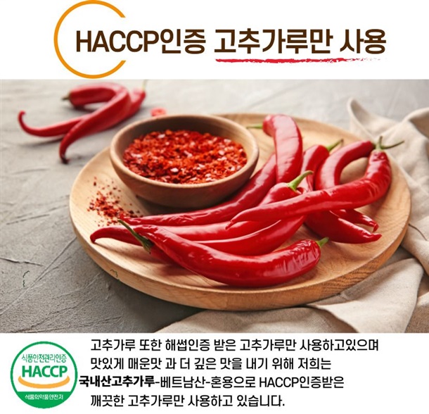 | 3. 농수산물의 원산지 표시에 관한 법률에 따른 원산지 | 주제료 모두 국내산 , 고추가루((국산(청량)베트남)) |