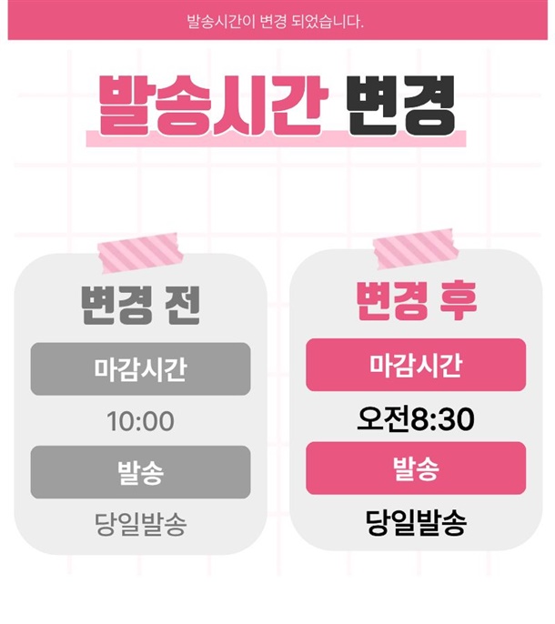 · 예약 발송 상품은 상 품 상세 설명에 안내한 배송관련 정보를 반드시 확인 후 구매해 주세요.